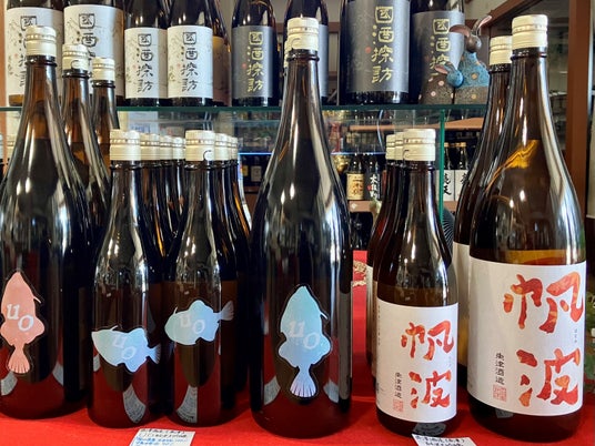 長岡酒店に並ぶ「帆波 純米大吟醸 秋酒」、「UO」
