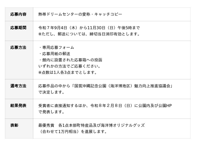 【海洋博公園】~海洋博公園開園50周年・熱帯ドリームセンター開館40周年記念~ 熱帯ドリームセンター 愛称&キャッチコピー 大募集!