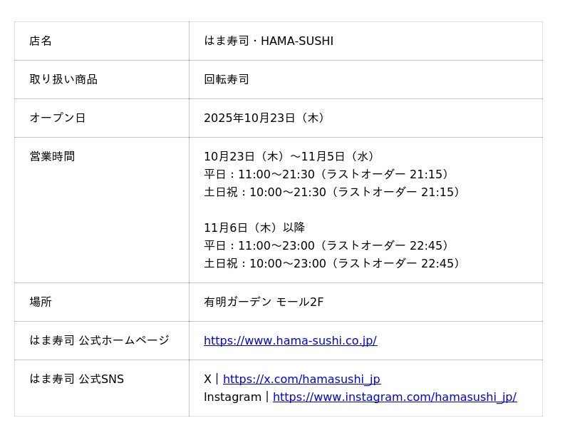 ■新規店舗「はま寿司 有明ガーデン店」について