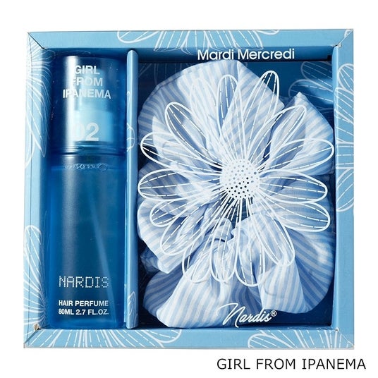フラワーマルディがあしらわれたボックスに、オリジナルタグ付きのシュシュとヘアフレグランスがセットになった限定アイテム。