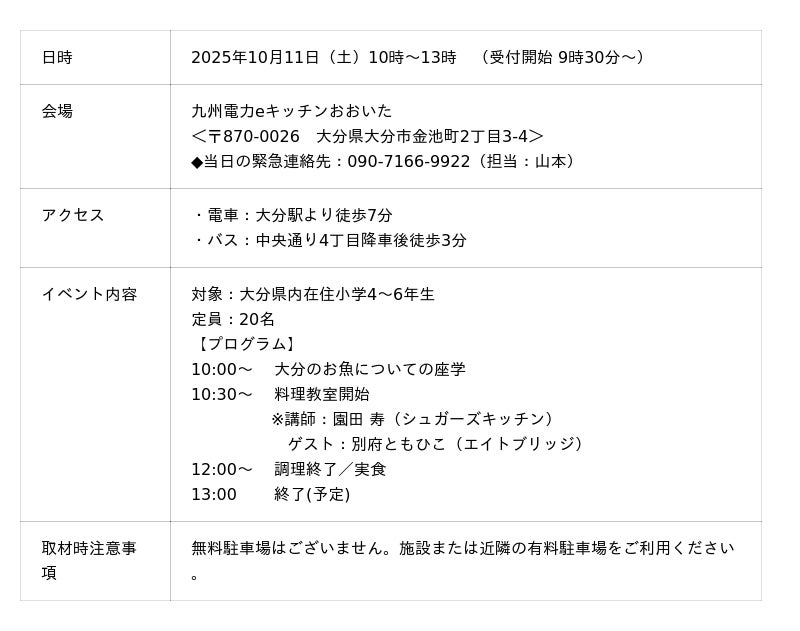 2025年10月11日(土) 10時~13時/会場:九州電力eキッチンおおいた