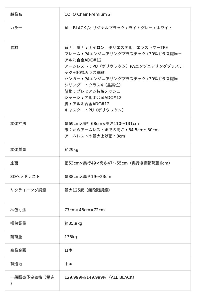 Makuakeプロジェクトページ:https://www.makuake.com/project/cofo_chair_premium2/