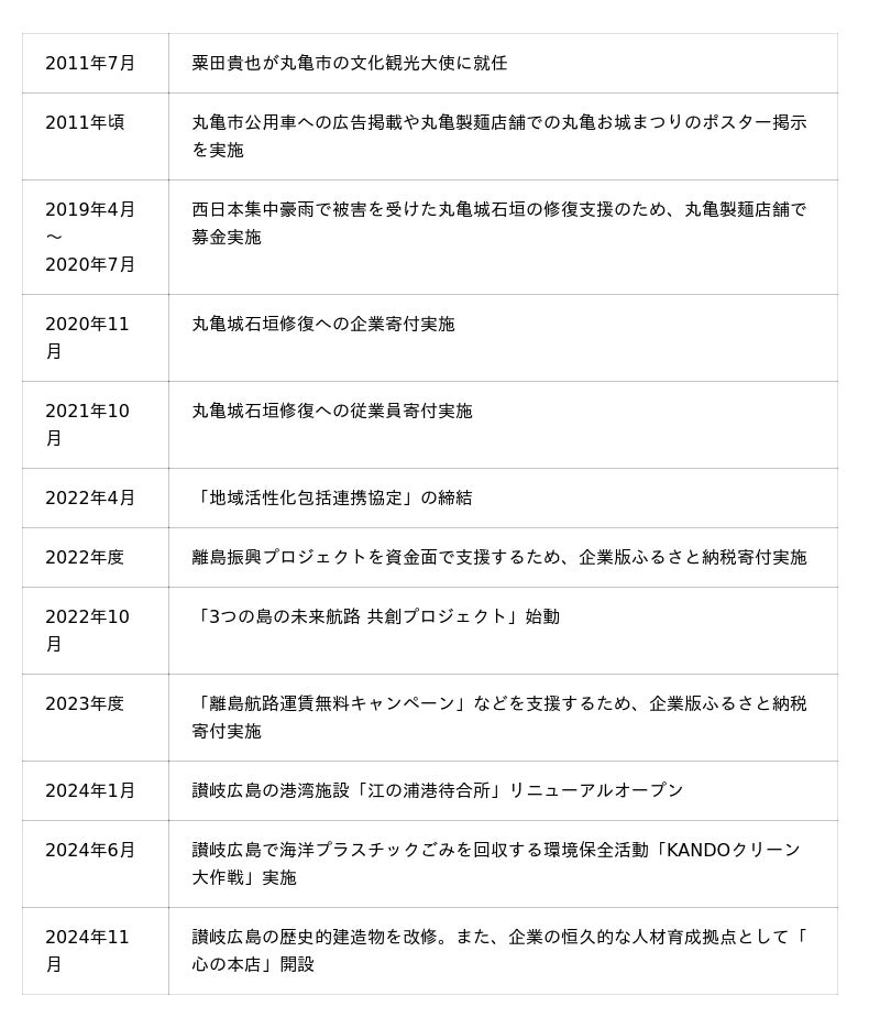 <丸亀市とトリドールHD・丸亀製麺の歩み>