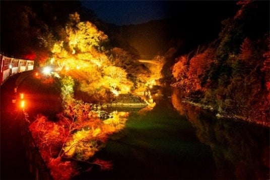 嵯峨野観光鉄道株式会社では、毎年ご好評いただいているトロッコ列車沿線のライトアップ&イルミネーションを、今年も実施いたします。『光の幻想列車』と題し演出した沿線では、約1000台の照明に照らされる美しい紅葉、色彩豊かな光によってさらに神秘的な姿を見せる山々、きらめく川面など、まさに「幻想的」な光景をお楽しみいただけます。