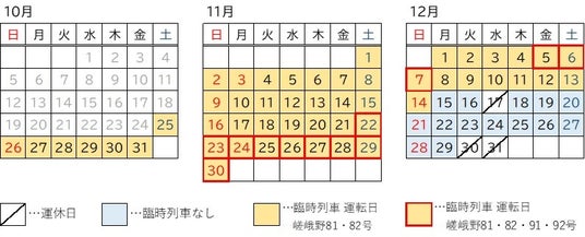 運転日 2025年11月22日(土)~30日(日)、12月5日(金)~7日(日)
