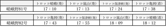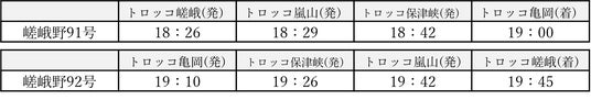 〔補足〕嵯峨野16号(トロッコ亀岡駅16時30分発)以降、ライトアップ及びイルミネーション