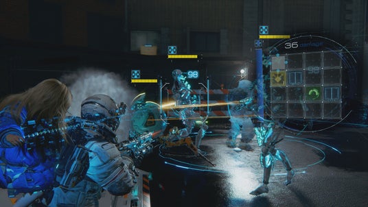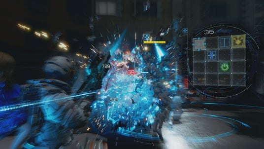 ヒューは4つのタイプの武器を持ち替えて戦闘に臨みます。強力な効果を持つ武器は残弾数がゼロになると消滅してしまうので、ハッキングとの並列思考の中で使用タイミングを見極めることが重要です。