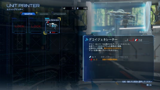 ステージ内で一度でもデータを入手したことのある武器やハッキングノードは、シェルターの3Dプリンターで生成と強化が可能になります。装備をアップグレードして強敵へ立ち向かいましょう。