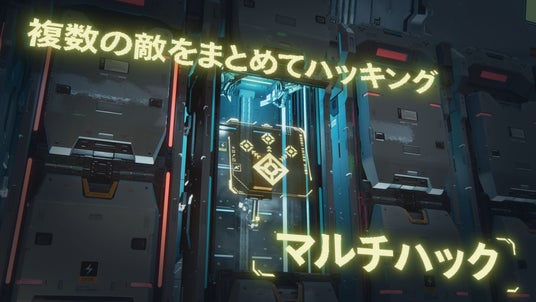 ハッキングノードを装備していると出現する黄色マスを通過してからハッキングに成功すると、特殊な効果が発動して戦闘を有利に進めることができます。防御ダウンや、複数敵へのハッキング効果の伝播など、効果は様々。
