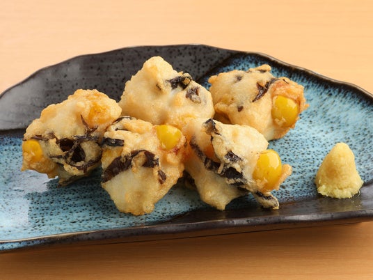 黒舞茸の天ぷら香り高く濃厚な味わいの「黒舞茸」を天ぷらにし、香りと旨味を一層際立たせました。