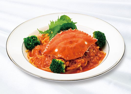 特長:渡り蟹の旨味が凝縮したトマトソースパスタ。存在感のある渡り蟹のほぐし身や、お店仕込みのオリジナルソースで仕上げたコク深くまろやかな味わいをお楽しみください。