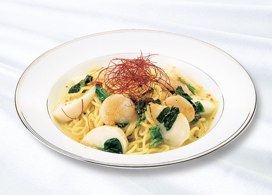 特長:フレッシュなほたてと甘みののった旬のかぶの柔らかな食感を残し、おいしさを引き出した贅沢な和風仕立て。醤油バターに貝の旨みが溶け込む香ばしい一皿です。