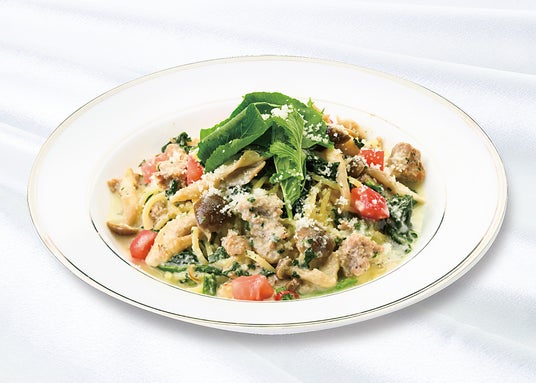 特長:舞茸・しめじ・エリンギをペーストにしてクリームソースに、ソテーしてトッピングに使用している"きのこ感"を楽しめるパスタ。粗挽き香味ポークと3種のきのこが醸し出す、濃厚な旨みと香りをご堪能ください。