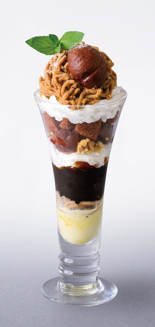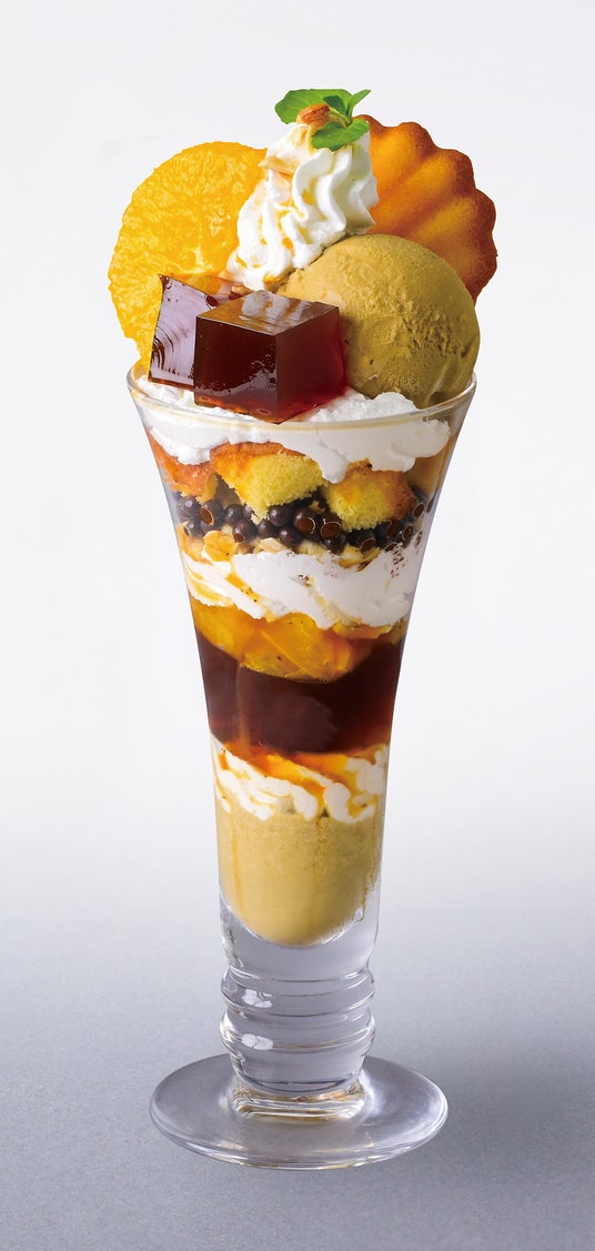 特長:和紅茶のアイスクリームに、店舗仕込みのゼリーとシロップを重ね、オレンジとマドレーヌを飾った秋らしいパフェ。まろやかな和紅茶と爽やかなオレンジの組み合わせをご堪能ください。