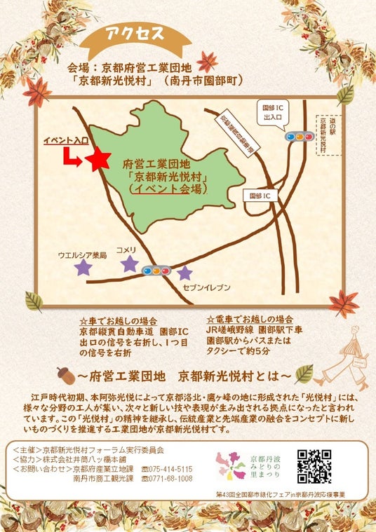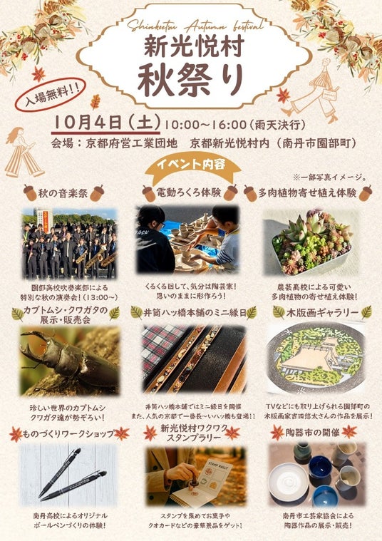 ■京都新光悦村フォーラム実行委員会(京都府等で構成)は、府営工業団地京都新光悦村を広く知っていただくため、「京都新光悦村秋まつり」を開催します。