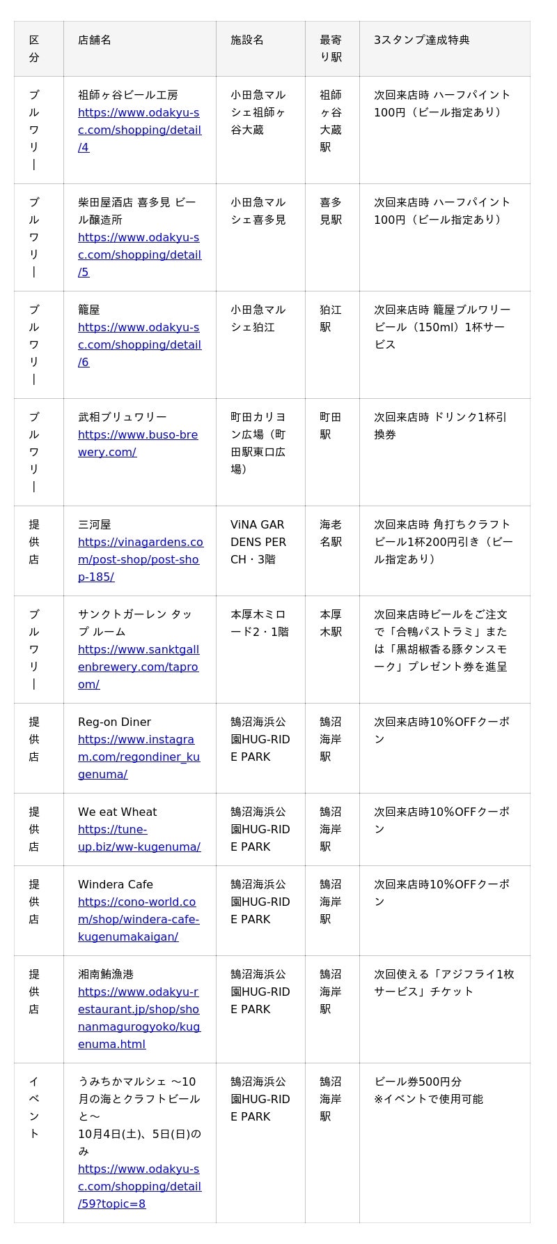 参加者は、期間中、ビールのご注文やお買い上げで3スタンプを集めると参加店舗で使えるクーポンを、5スタンプ達成で先着500名さまに本イベントのオリジナルグッズと小田急の鉄道グッズなどのノベルティセットを進呈、さらにWチャンスとして、7スタンプ達成の方に抽選で9名さまにクラフトビール詰め合わせが当たります。また、本スタンプラリー開催期間中の10月4日(土)・5日(日)の2日間限定で、藤沢市の鵠沼海浜公園「HUG-RIDE PARK」にて、「うみちかマルシェ ~10月の海とクラフトビールと~」を開催しており、ご来場で本スタンプラリーの1スタンプをおためいただけます。
