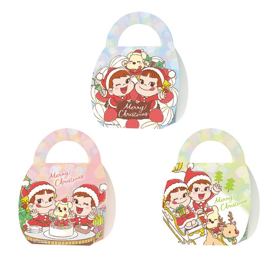 サンタクロースに扮したペコちゃん、ポコちゃん、ドッグが描かれたクリスマスデザインのコロンと可愛いミニバッグです。中にはお菓子やシールが入っており、ちょっとしたプレゼントにもぴったりです。