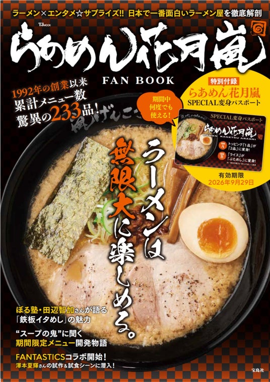 株式会社宝島社(本社:東京都千代田区、代表取締役社長:関川誠)は、「人気チェーン公式ファンブック」シリーズより、『らあめん花月嵐 FAN BOOK』を2025年9月29日(月)に発売します。