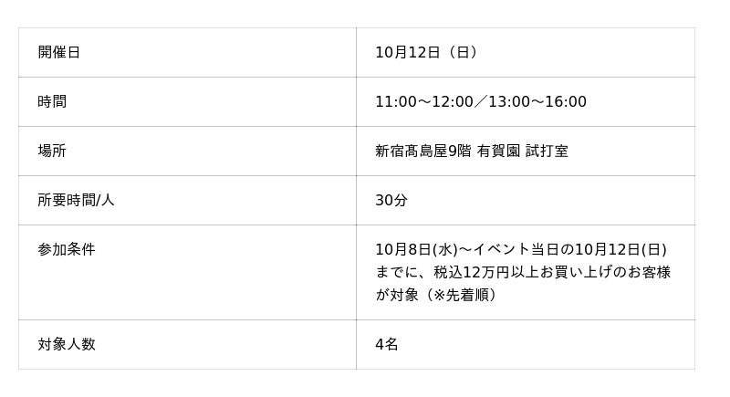 本レッスンは、税込12万円以上お買い上げいただいたお客様を対象とした、先着4名様限定の特別な機会です。プロによる的確なアドバイスを間近で受けられる貴重なチャンスとなっておりますので、ぜひお早めにご来店ください。
