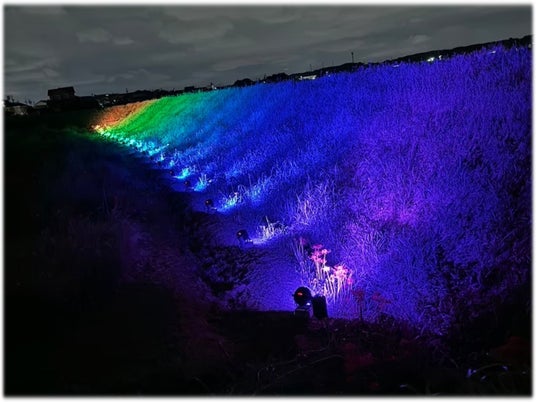 ▲彼岸花をライトアップする「ハナノヒカリプロジェクト」:夜のライトアップにより、非日常の風景が演出されることで、様々な顔の彼岸花を見ることができ、日中とは違った雰囲気が味わえます。また、10月4日には矢勝川沿いで初のスカイランタンも実施されます!