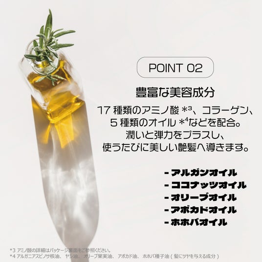「17種のアミノ酸*³+コラーゲン+5種のオイル*⁴で潤いと弾力をプラス」