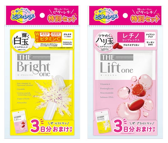 「ザ・リフトワン」発売を記念して、既存のシリーズ品「ザ・ブライトワン」の3日分のサンプル付きの企画品を初回出荷分15,000個限定で販売します。また、「ザ・ブライトワン」も「ザ・リフトワン」の3日分のサンプル付きの企画品を5,000個限定で販売します。