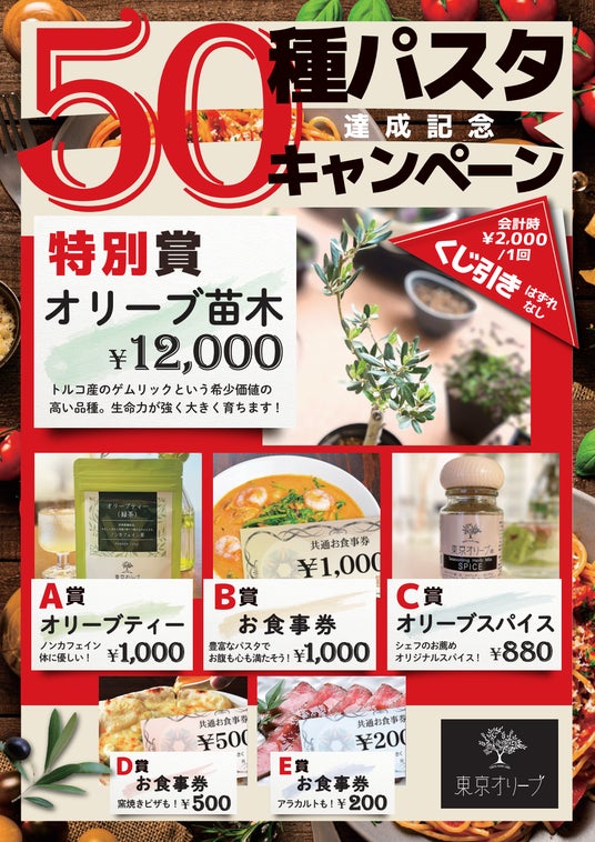 千葉エリアを中心にスープパスタ&PIZZA専門店「東京オリーブ」を展開する株式会社傑さく(本社:千葉県船橋市)は、2025年10月にパスタメニュー数が50種類に到達いたします。これを記念し「50種類パスタ」特別キャンペーンを10月1日~15日の期間で開催いたします。