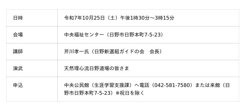 ひの市民大学「第3回 日野ゆかりの新選組と剣術」