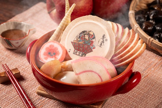 弘前ねぷたまつりの象徴である扇形の山車を、スライスしたりんごや弘前で馴染みのある豆腐かまぼこで表現した鍋です。青森県民にも親しまれるしじみの旨みを加えた、滋味深く奥深い味わいの出汁が、城下町の祭りらしい落ち着いた風情を感じさせます。