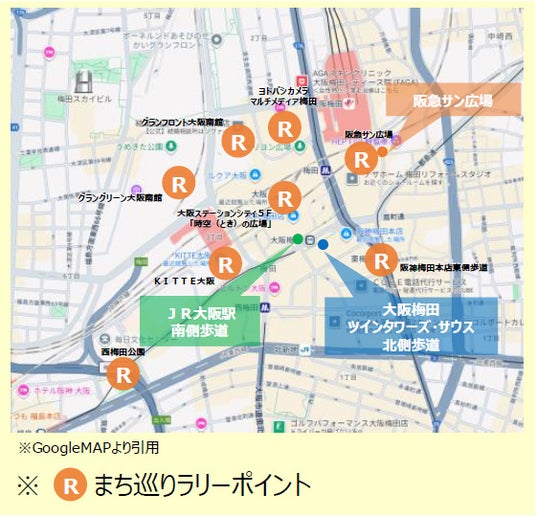 内容:各所に設置されたラリーポイントを巡りながら、梅田エリア内のまち歩きを楽しめます。