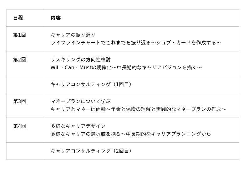 第2回と第3回の間と、第4回の後にキャリアコンサルティングを実施し、