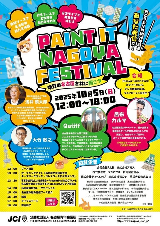 2025年10月1日(日)12:00より、久屋大通パークメディア広場にて、10月例会『魅力あふれるNAGOYAを創造する例会~PAINT IT NAGOYA FESTIVAL~』を開催します。