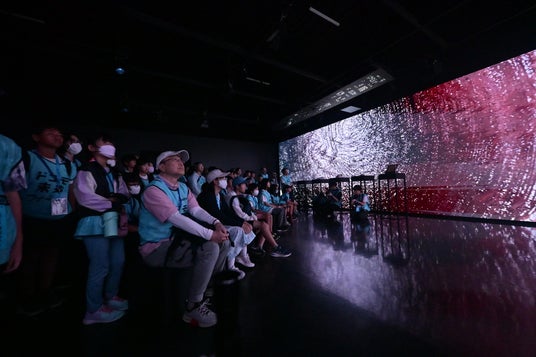 過去の万博「電気通信館」と今回のNTTパビリオンを自由に行き来しながら、離れた会場の振動やリアルタイム3D点群データによる3D映像なども通して、IOWNを活用した世界初のパフォーマンスに没入。まるでその場にいるような臨場感たっぷりの体験に、子どもたちも感動していました。