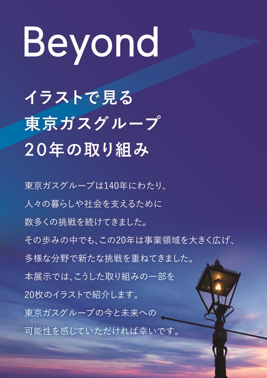 東京ガスグループは140年にわたり、人々の暮らしや社会を支えるために数多くの挑戦を続けてきました。本展示では、その取り組みの一部を20枚のイラストで紹介します。