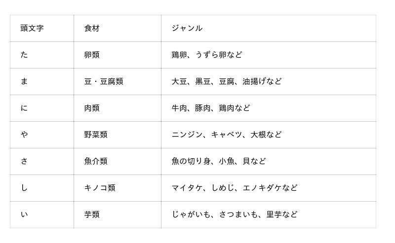 食材の頭文字をとり、語呂合わせにした千代田荘オリジナルの造語です。