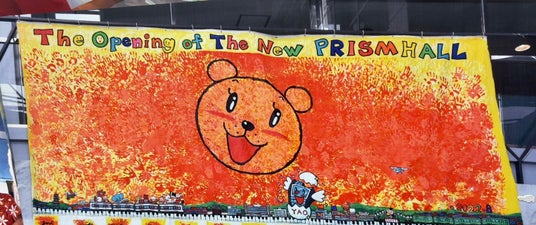 今回は2022年8月2日にリニューアルグランドオープンした徳治昭の地元、八尾市文化会館プリズムホール。オープン記念で市民のみなさんと一緒に作った「らいおんサンタペストリー」を文房堂ギャラリーにて展示します 5メートルの大作。関東方面で見ることないので、この機会に是非お越しください。
