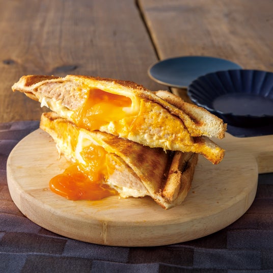 とろ~りたまごとつくね、キャベツが入った照り焼き風ホットサンド