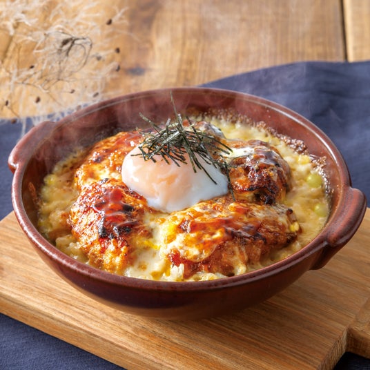 温泉たまごをのせた和風仕立ての月見ドリア。