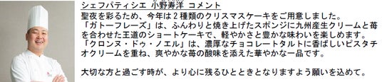 クリスマスケーキの予約を開始いたします。
