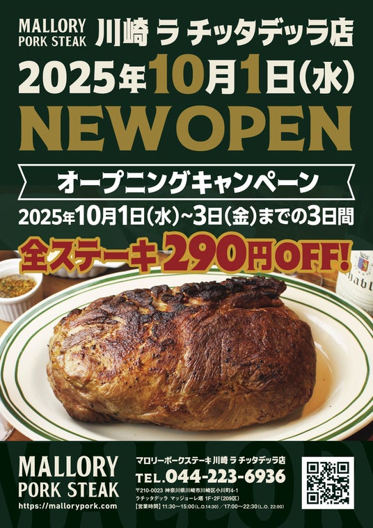 マロリーポークステーキ川崎 ラ チッタデッラ店 2025年10月1日(水)開店
