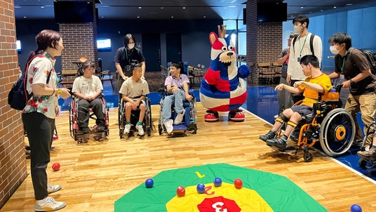 見学中には、サプライズでゴーディーが登場し、子どもたちとハイタッチし、写真撮影などを通して交流を行いました。さらに今回、サブアリーナではボール遊びや「ボッチャ」という競技の体験も行い、楽しい時間を過ごしました。以前ゴーディーが訪問した学校の生徒たちや、園児たちも参加しており、「ゴーディー久しぶり!また、遊びに来てね!」といった声や、「アリーナに来たことあったけど、今日も楽しかった」、「また遊びに来たい」、「今度キングスの試合見にいくよ」などの声が寄せられ、アリーナでの特別な体験を満喫している様子が見られました。
