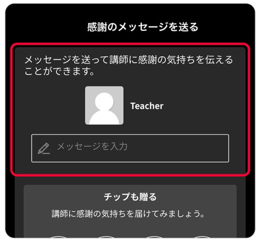 レッスン終了後、講師に「感謝のメッセージ」を送信してください。
