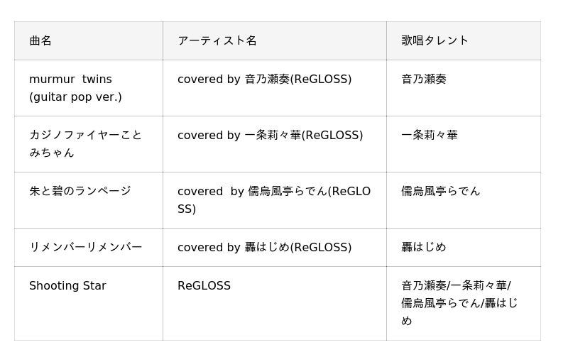さらに本イベントの開催を記念して、「ReGLOSS」の4名がそれぞれカバーした「BEMANI」楽曲と、4名が歌唱する書きおろし新曲「Shooting Star」も含めた、全5曲が対象機種および一部コナステ版「BEMANI」タイトルにてお楽しみいただけます。