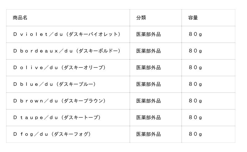 こうした背景を受け、当社は「キャラデコ」より、新たに「ダスキーカラー」全7アイテムを発売します。「ダスキーカラー」は、"個性を引き出す、くすみダーク。"をテーマに、サロンさまの提案の幅を広げるカラーを目指して開発。単なる暗髪ではなく、生活者が求める「くすみダーク」を表現できます。