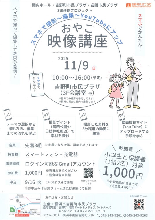 【関内ホール・吉野町市民プラザ・岩間市民プラザ 3館連携プロジェクト】「おやこ映像講座」