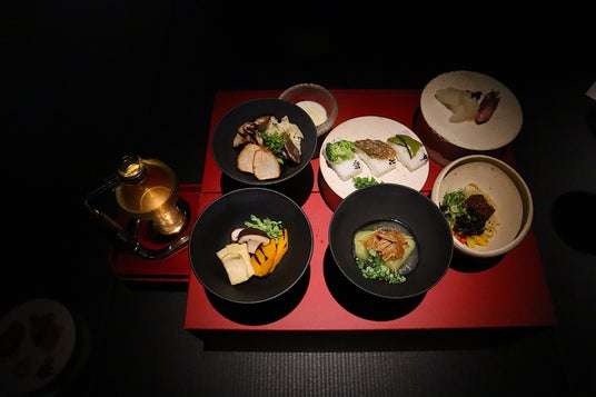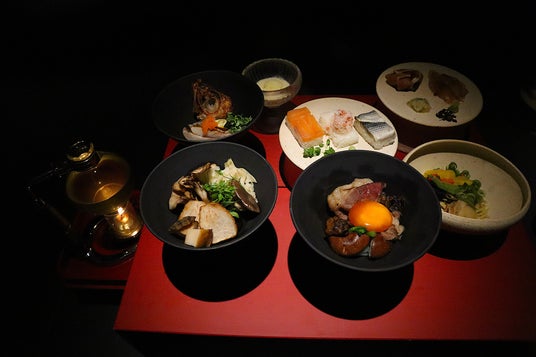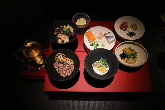 ■メニュー barrierでは、三方(さんぼう)をお膳として利用し、岡持ち(おかもち)に収められた三つのお椀料理に、サイフォンで抽出された一番出汁を注ぎます。 これにより、一杯のお出汁がお客様の食体験に奥深さと芳醇さを加えます。 barrierは、伝統的な日本料理のエッセンスを守りつつも、現代的なアプローチで新たな魅力を引き出すことを目指しています。 漆黒の空間で五感を研ぎ澄ませて、出汁に合う料理をお楽しみください。