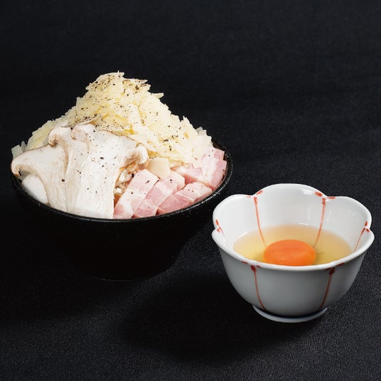 濃厚なクリーム味のもんじゃにたっぷりの北海道産パルメザンチーズを加え、最後に卵をのせて混ぜると、味わいは至福のカルボナーラ!