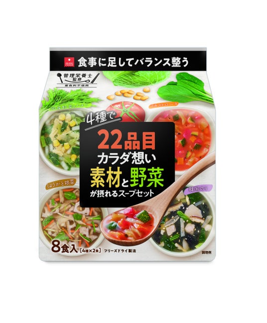 《管理栄養士監修》 手軽に美味しくバランス整う!『22品目のカラダ想い素材と野菜が摂れるスープセット』を新発売