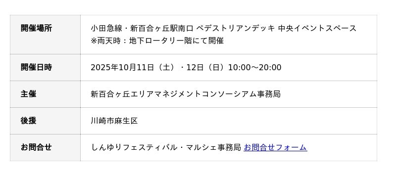 10月11日(土)・12日(日)10:00~20:00、しんゆりフェスティバル・マルシェ内にて開催