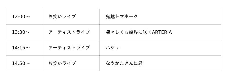 イベント当日は、大人にも子どもにも大人気のお笑い芸人や、宮城県にゆかりのあるアーティストによるスペシャルライブなど、充実したステージパフォーマンスをご用意しております。